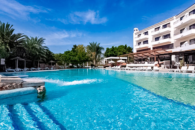 Located in Kato Paphos and set in its own gardens, the locally-rated 4-star Paphos Gardens Holiday Resort is just 300 metres from a lovely sandy beach and offers everything we need for a relaxing stay. The 200 comfortable en-suite rooms feature a balcony with views of either the gardens or pool, air-conditioning, satellite TV, radio and a hairdryer, while other hotel facilities include a lobby bar, pool bar, restaurant, two outdoor pools, an indoor pool, gym, tennis court mini market, launderette and a spa with sauna, steam room and whirlpool (spa treatments and tennis courts are available at an extra cost).