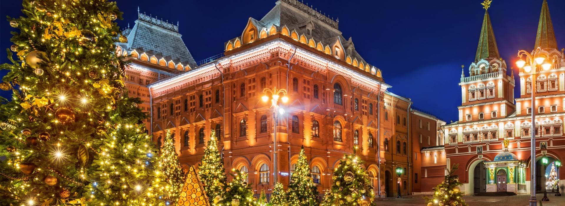 Today's guided tour brings to life this, one of the world’s great cities. See Red Square, where multi-coloured, onion-domed St Basil’s Cathedral, Lenin’s eerie Mausoleum and the great Victorian pile of GUM (the former State Department Store and now a glittering shopping mall complete with dazzling decorations) look out over the vast space to the colourful stalls of Moscow’s largest Christmas market.Encircling Red Square, like rings on a tree-trunk or the layers of a Russian doll, you'll find the rest of the city’s central areas, each vying to outdo the others with its extravagant festive decorations. A giant Christmas bauble adorns Manezh Square, while Tverskoy Boulevard is transformed into a wintertime paradise for children of all ages.The rest of your day is left free. Browse the markets on Red Square, warmed by a gluhwein or vodka, visit a museum or wander the city's shops and stores. Unlike most European cities, Moscow remains fully open over "our" Christmas, meaning you can enjoy a full day of sightseeing and shopping before beginning your celebrations with dinner at your hotel this evening.