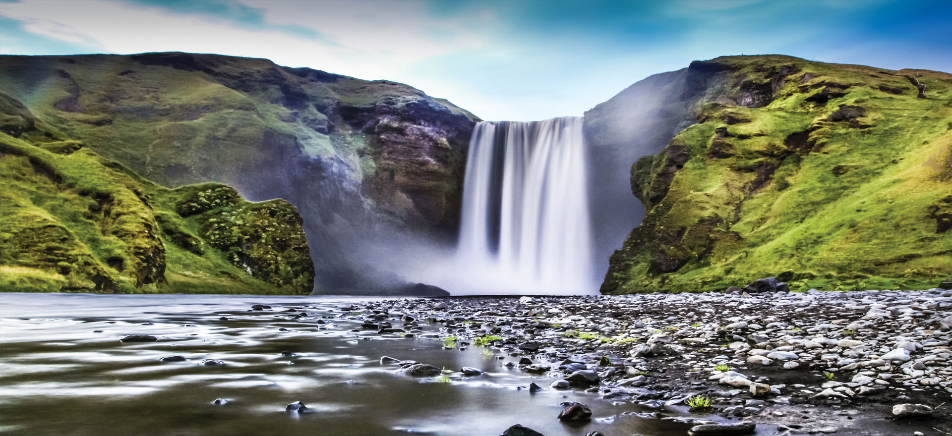Today we explore Iceland’s delightfully diverse south west shoreline firstly climbing through a remarkable lunar like landscape of multi-coloured lava plateaux, through the Threngli Pass and descending across the sparkling River Olufsa – famous for its excellent salmon. Some of Iceland’s prettiest landscapes now lie before you as we pass farms and charming villages set amongst pleasant pastures – keep an eye open for the exceptionally hardy Icelandic horses. To the north you can see Myrdalsjokull and Eyjfjalla Glaciers - the latter famous for its volcano below, which infamously halted Europe’s air traffic in 2010. We head for two of Iceland’s most spectacular waterfalls, Seljalandsfoss tumbles ribbon-like over a great overhanging lava cliff whilst Skogafoss is one of the country’s highest, plunging some 60 metres in an impressive shower of shimmering spray. The natural wonders continue as we approach the imposing wall of ice forming the snout of the immense Solheimajokull Glacier. You may notice a sulphurous hint in the air here, as the waters emanating from the glacier here are called “Stinking River” due to the sulphurous acid content absorbed from the hot geothermal rocks beneath your feet. Next we travel to Reynisfjara, close to Iceland’s southernmost point, to see the famous black-sand beach. Depending on the time of the year, you may be lucky enough to spot the renowned Atlantic puffin colonies.