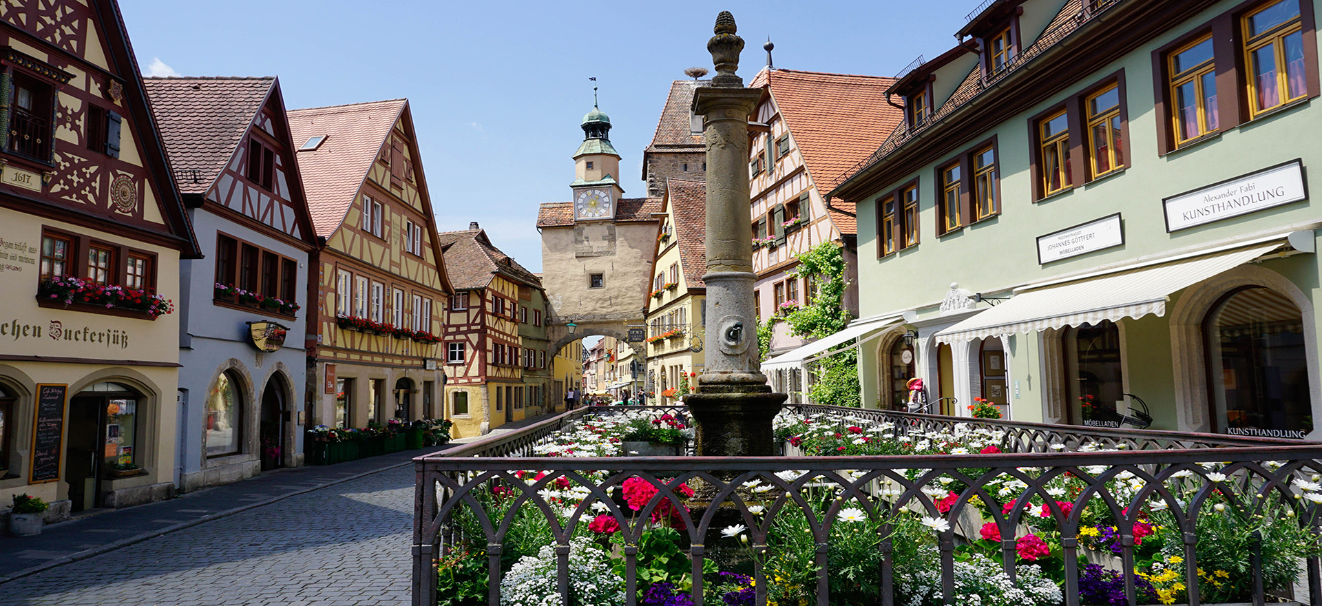 After breakfast we take a drive along the Romantic Road – the perfectly named route made up of a spellbinding procession of folkloric scenery, medieval towns, lofty castles and grand palaces, so picture-perfect they could all serve as film sets. We arrive at gorgeous Rothenburg, crowning a hill with glorious views over the meandering river below. The old town is cradled within immaculately preserved walls, and there’s time to explore its narrow, cobbled streets lined with tall gabled half-timbered houses.