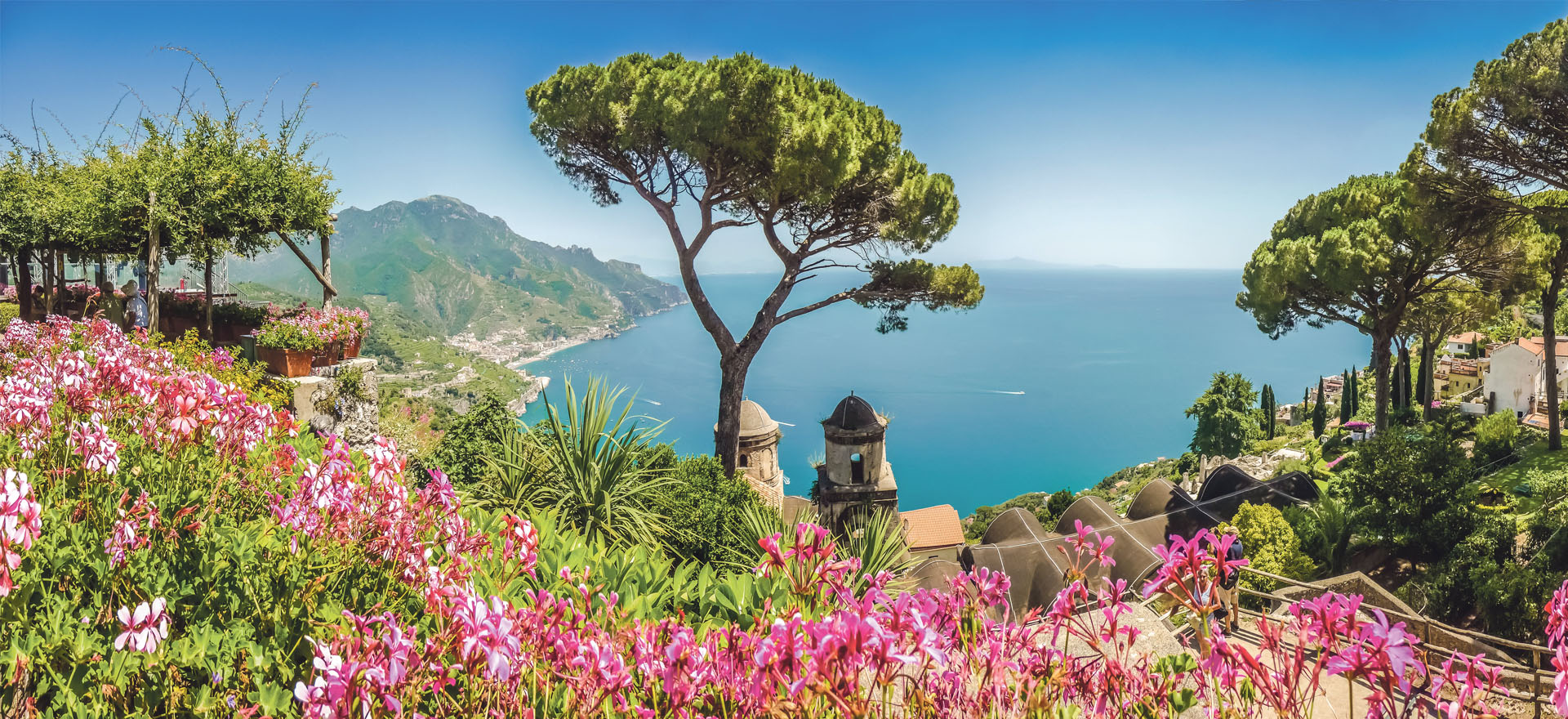 Today you’ll have a chance to experience the sublimely beautiful Amalfi coast at first hand as we wind around spectacular pine-clad cliffs that tumble down into the turquoise Mediterranean. Our coastal drive takes us above the exclusive resort of Positano … haunt of celebrities, we continue our drive just inland to the stunning village of Ravello, with its awe-inspiring location perched like an eagle’s nest on a shelf above Amalfi affording amazing views. It has an ambience all its own, with an enchanting main square, a 13th-century cathedral and the Villa Rufolo, which was once the centre of a city-state and is now an interesting collection of medieval buildings, statues and terraced gardens (it was also the inspiration for elements of Wagner’s opera Parsifal).
