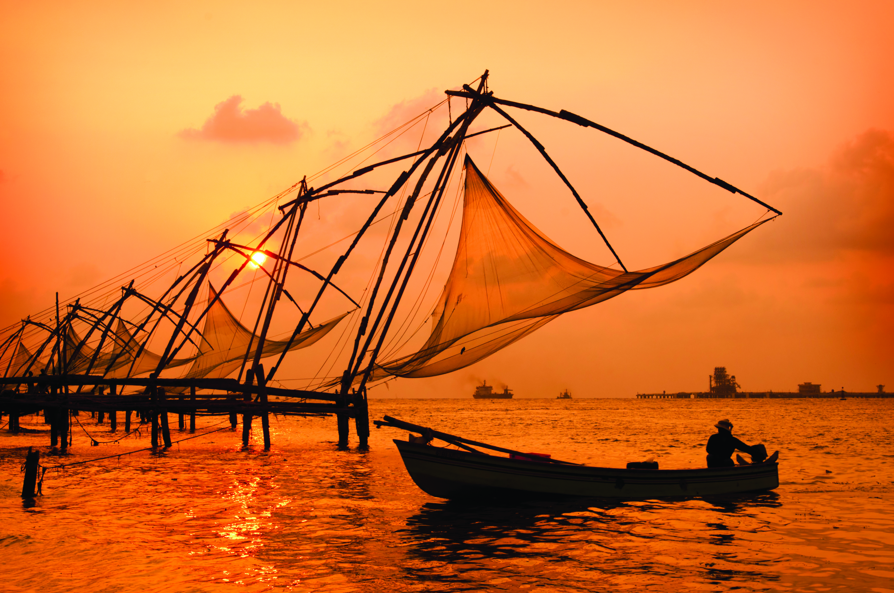 Cochin - This morning we take a short drive to Cochin, the Malabar Coast’s most historic port, traditionally from where India’s invaluable spices were shipped to Europe. The city’s oldest quarter is Fort Cochin, a fascinating maze of narrow alleyways and large merchants’ houses, whilst the nearby bazaar district of Mattancherry has the Dutch Palace and the subcontinent’s oldest synagogue. The iconic sight in Cochin is the famed Chinese fishing nets, vast cantilevered contraptions that still work to this day.