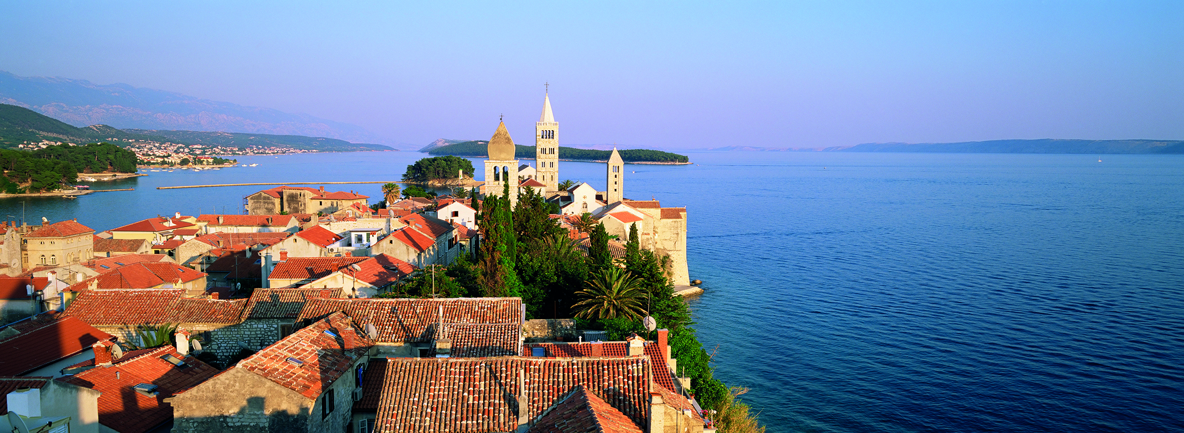 Later we arrive in Rab, a real gem and one of the most alluring islands along this stretch of the Dalmatian coast. Sheltered against its sturdy mountainous spine, a verdant landscape of lush fragrant pine forest and a fertile patchwork of vine and olive groves gives way to golden ribbons of deserted beach and picturesque coves along this strikingly beautiful peninsula. Four colourful lofty bell towers rise up from the blaze of terracotta rooftops below.