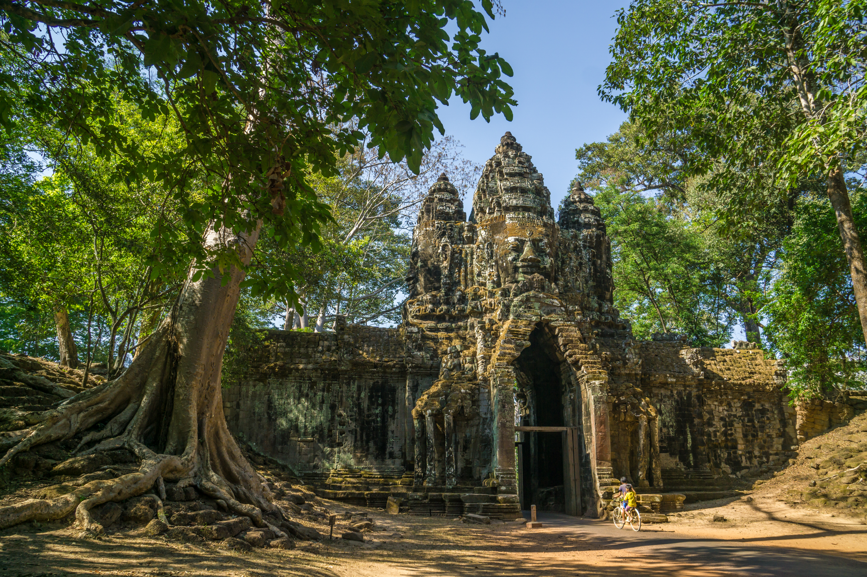 We visit the fortified 13th century city of Angkor Thom, with its five monumental gates, and 300-foot-wide moat - its centre containing the temple of Bayon. We’ll also visit the smaller temple of Ta Prohm which has been left unrestored, with giant tropical trees bursting through the ruins, their roots clinging like tentacles.